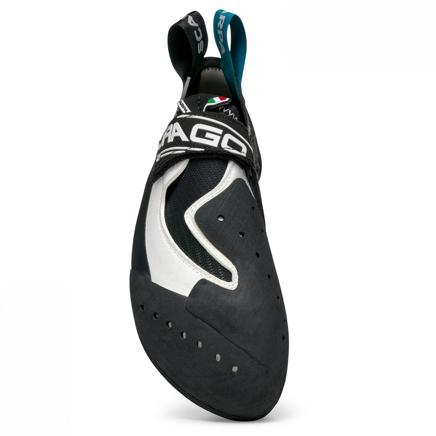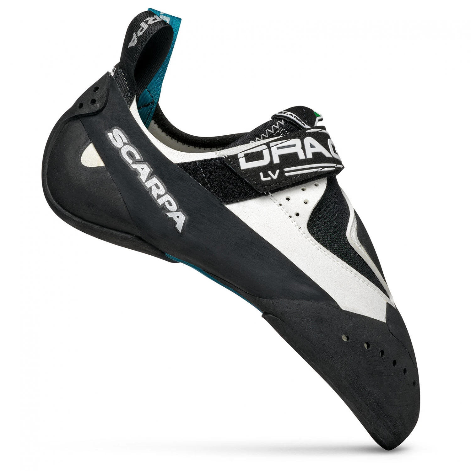 The Drago LV by Scarpa are most at home sport climbing and bouldering. These climbing shoes impress with their high performance and numerous practical features. They are made of soft, smooth microfiber. These shoes adapt perfectly to the shape of your feet so they fit almost like a pair of socks. This version of the shoes is an LV model (low volume) so it fits narrow feet especially well.